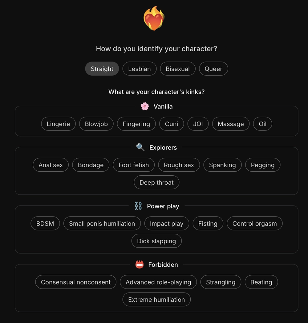 Weirdly, you'll be asked to choose between a SFW or Mature model. Don't lazily tap SFW thinking "Well, I don't want a granny"... SFW means Safe For Work! The only way to unlock sexting and dirty roleplay is by choosing Mature. It's weird they'd make you select this option, but I guess with a brand like "Love"scape, we have to keep up the pretences that some users are looking for sexless binary soulmates instead.
